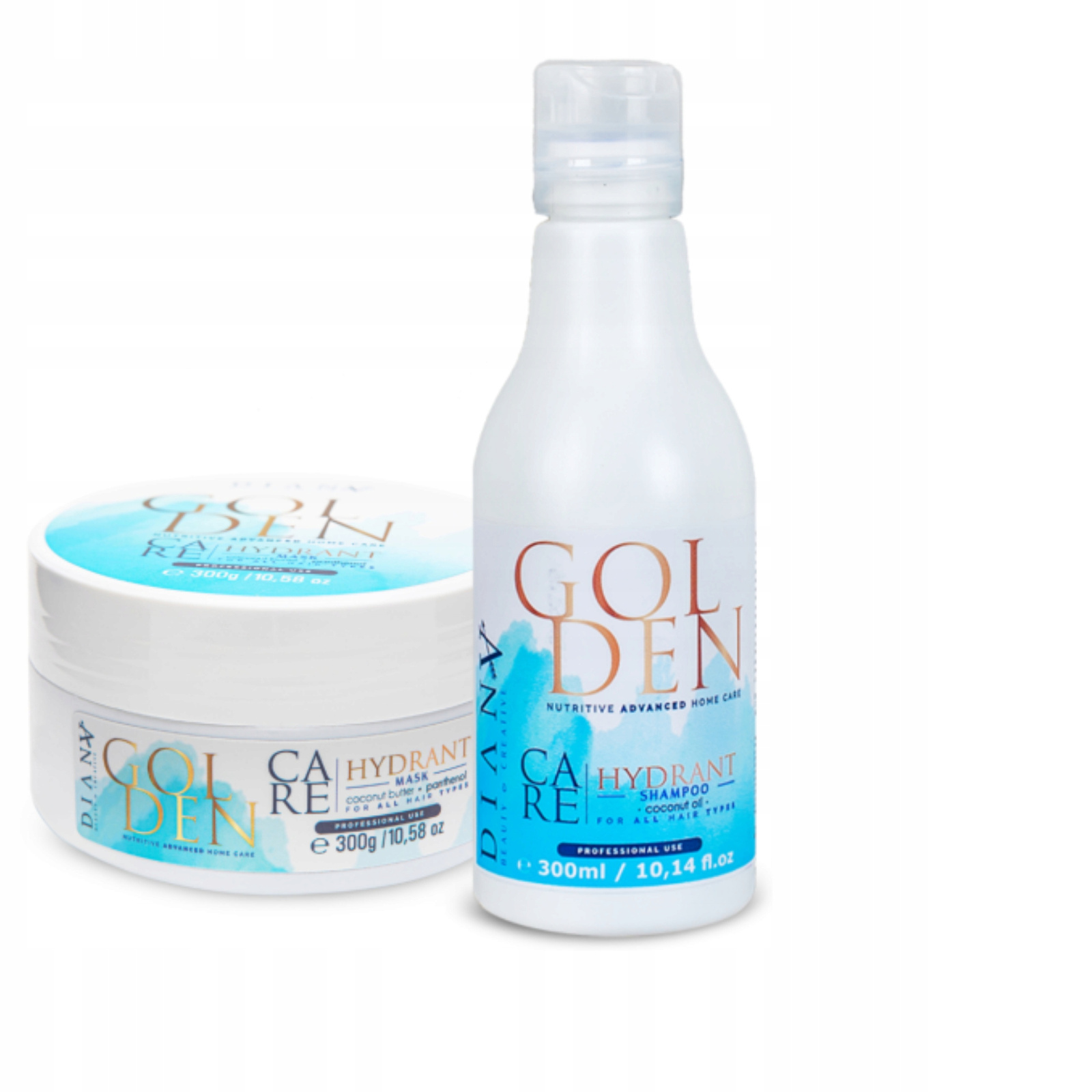 Zestaw Golden od marki Diana Beauty & Creative z linii pozabiegowej, który został opracowany z myślą o utrzymaniu optymalnych rezultatów po zabiegu botoksu i nanoplastii. Zestaw jest dostępny w wersji dedykowanej blondynkom, zawierający szampon nawilżający oraz odżywkę.