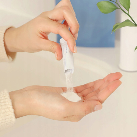 Sposób użycia: Należy wymieszać proszek z saszetki z wodą, aby uzyskać pianę, a następnie nałożyć ją na twarz. Delikatnie masować skórę okrężnymi ruchami, szczególnie w strefie T. Po kilku chwilach dokładnie spłukać ciepłą wodą.
