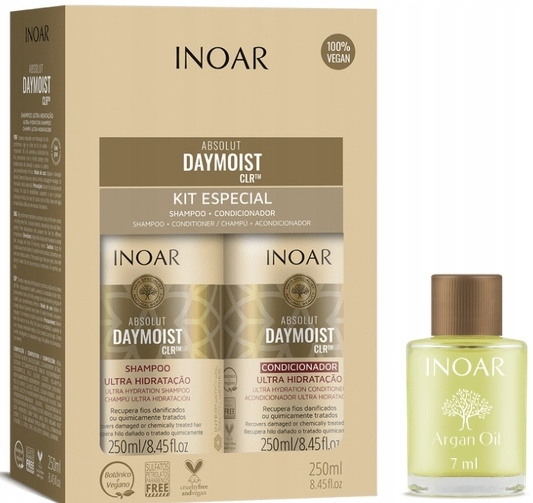 INOAR ABSOLUT DAYMOIST szampon + odżywka po keratynie 2x250ml + olejek 7ml
