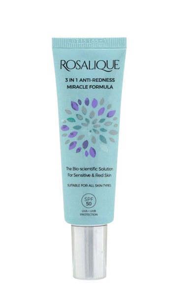 Rosalique 3in1 Anti-Redness Miracle Formula SPF50 to innowacyjny krem stworzony specjalnie dla osób zmagających się z zaczerwienieniami skóry, trądzikiem różowatym, naczynkami i nierównym kolorytem. Ten wielozadaniowy produkt łączy w sobie właściwości pielęgnacyjne, kamuflujące oraz ochronne. Dzięki inteligentnej technologii mikrokapsułek i zielonkawej formule, krem natychmiastowo neutralizuje zaczerwienienia, nadając skórze zdrowy i wyrównany wygląd – bez konieczności używania podkładu.