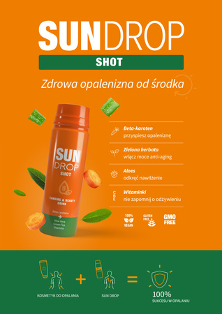 Marzysz o złocistej, równomiernej i długotrwałej opaleniźnie? Sun Drop Shot to innowacyjna formuła w postaci orzeźwiającego shota, który przygotowuje skórę do słońca i solarium, przyspieszając proces opalania oraz dbając o jej nawilżenie i odżywienie od środka. To idealne rozwiązanie dla osób, które chcą cieszyć się zdrową i naturalną opalenizną bez przesuszenia skóry.